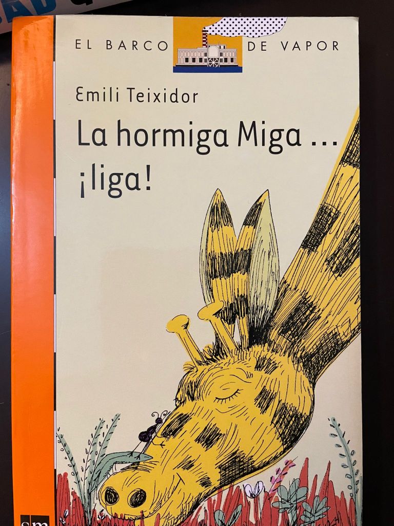 La leona Patata Peluda está devorando una colección de libros de el Barco de Vapor y se ha fijado en ‘La Hormiga Miga… ¡Liga!’, de Emili Teixidor. El libro trata de un ‘juicio de enamorados’ bastante dispares: que si un camaleón y una lagartija, un amor no correspondido entre un hipopótamo y una mariposa amarilla, donde hay mucho ajetreo y todo eso… La jueza, que es la Hormiga Reina, encontrará soluciones para que todo el mundo siga enamorado. Pero estamos salvados porque la Hormiga Miga estará ayudando a la Hormiga Reina.