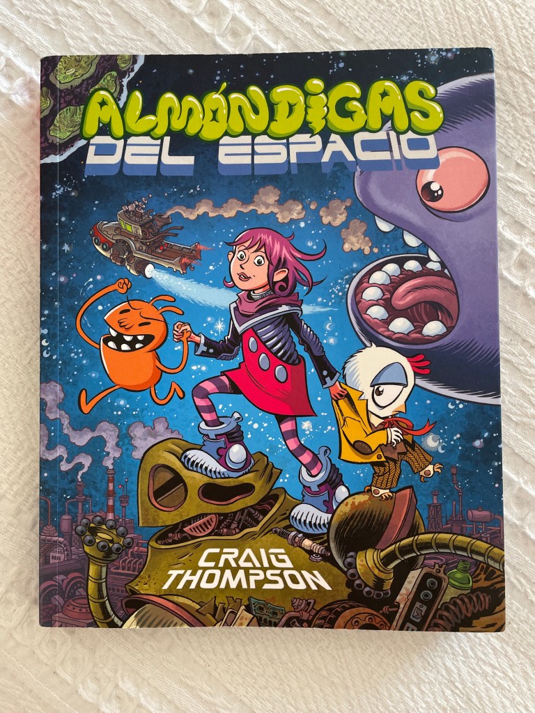 El León Patata Peluda vuelve a la carga con un nuevo Cómic que le regalaron por su cumpleaños. Y sí, sí, es almóndigas y significa ‘caca de ballena del espacio’. Cualquier libro con cacas y estas cosas es un must ya se sabe, y aún más si la protagonista es una chica!