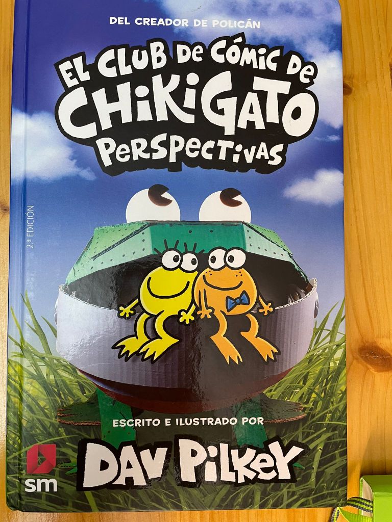 El León Patatín y el León Patata Peluda se están haciendo unos expertos en la obra de Dav Pilkey, no dejan ni un libro sin leerse. En este caso, trata de unas ranas que se reunen en una charca sentadas en unos troncos a hacer comics, bajo la mirada de Chikigato. Ahí es nada. Y les ha gustado y por eso comparten, porque compartir es amar.